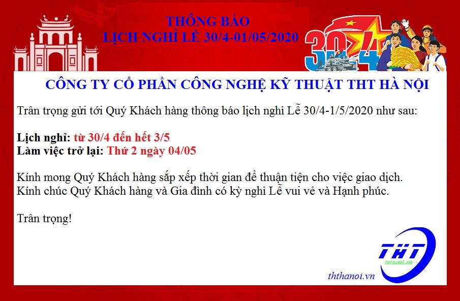 THÔNG BÁO NGHỈ LỄ 30/4-1/5/2020